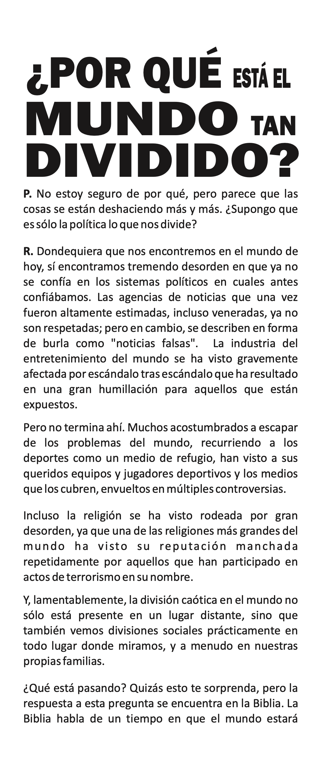 ¿Qué está pasando? Quizás esto te sorprenda, pero la respuesta a esta preguntase encuentra en la Biblia. La Biblia habla de un tiempo en que el mundo estará dividido como nunca ha estado dividido antes. El tiempo de gran división ocurre durante el Día del Juicio.