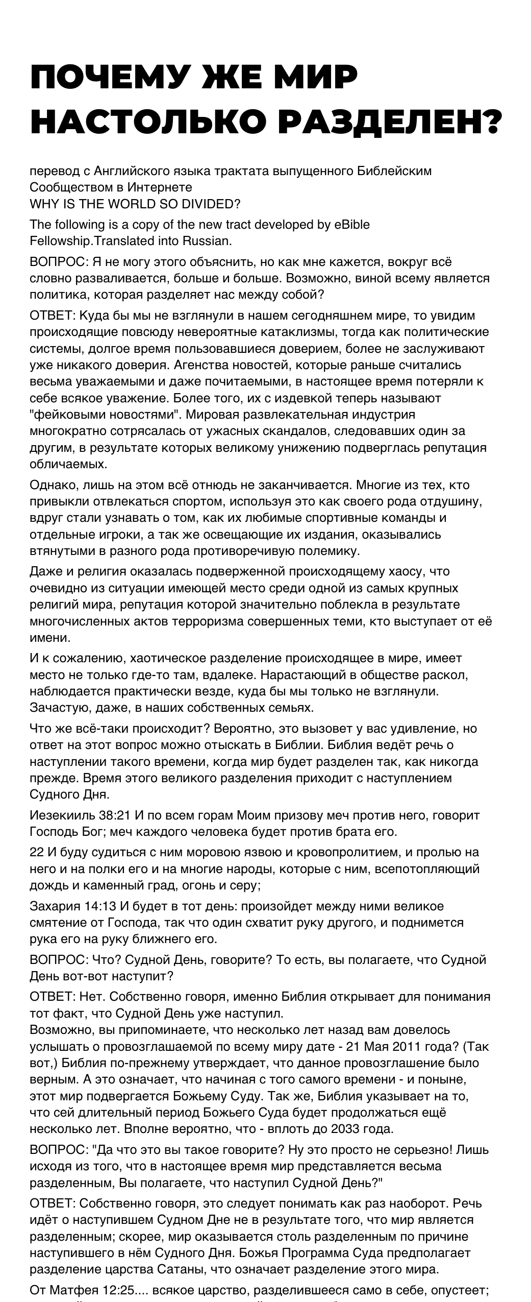 перевод с Английского языка трактата выпущенного Библейским Сообществом в Интернете