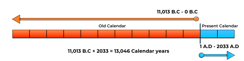 As an example, let's use 2011 A.D. -- if we add 11,013 years to 2011, we get 13,024 as the number of Calendar Years.